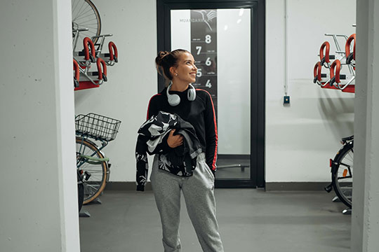 Im Erdgeschoss haben wir zahlreiche Fahrradstellplätze, um dein Fahrrad sicher und trocken aufzubewahren.